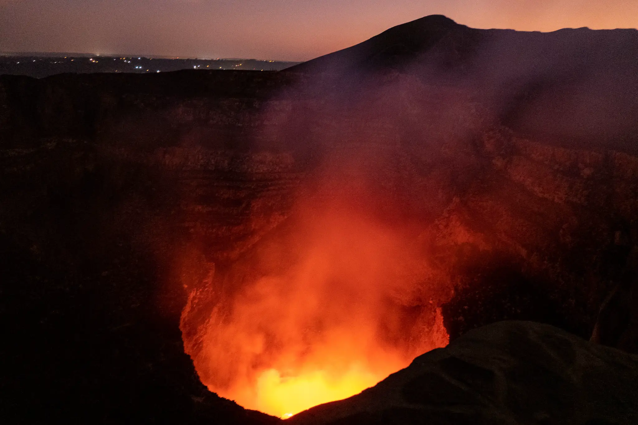 El mejor momento es justo después del atardecer, entre las 5:30 PM y las 7:30 PM, cuando el contraste del magma con la oscuridad es mayor.